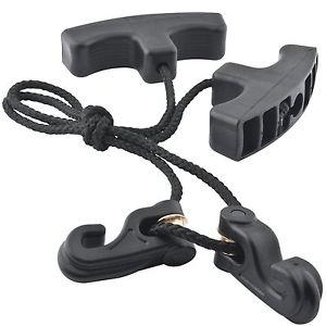 53E639 SKORPION CARICHINO BALESTRA COMPOUND Description Our ROPE COCKING AID will allow you to comfortably load and unload any Excalibur crossbow by reducing the felt draw weight by 50% as well as guarantee perfect string alignment for optimum accuracy. Made from highest quality components. It uses comfortable "T" handles and easily slips into a pocket when not in use. To use your rope cocking aid: 1. Take the two hooks, one between each thumb and forefinger and faccing away from you, and spread them apart until they contact the handles and the handles are in the palm of each hand. 2. With your foot firmly in the the crossbow's stirrup, bend down and attach one hook onto the string tightly aligned to the stock and with the handle away from the stock. 3. With the rope between the hooks braced in the string groove behind the trigger unit, pull the other hook down until the rope becomes tight. 4. Continue pulling down on the unattached hook with one hand while you pull up on the crossbow's string with the opposite hand. This will allow you to attach the second hook onto the string against the stock. 5. Taking the two "T" handles into your hands, with the rope running between your fingers, stand up straight and bend your elbows to draw the crossbow string into cocked position. 6. Immediately upon cocking your crossbow and before removing the cocking aid, put the safety in the on position. 7. Put the rope cocker in your pocket and go hunting!